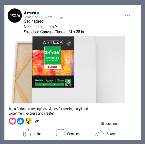 The intention of this group of facebook posts is to provide educational content for the consumer to encourage him or her to purchase on arteza's website.